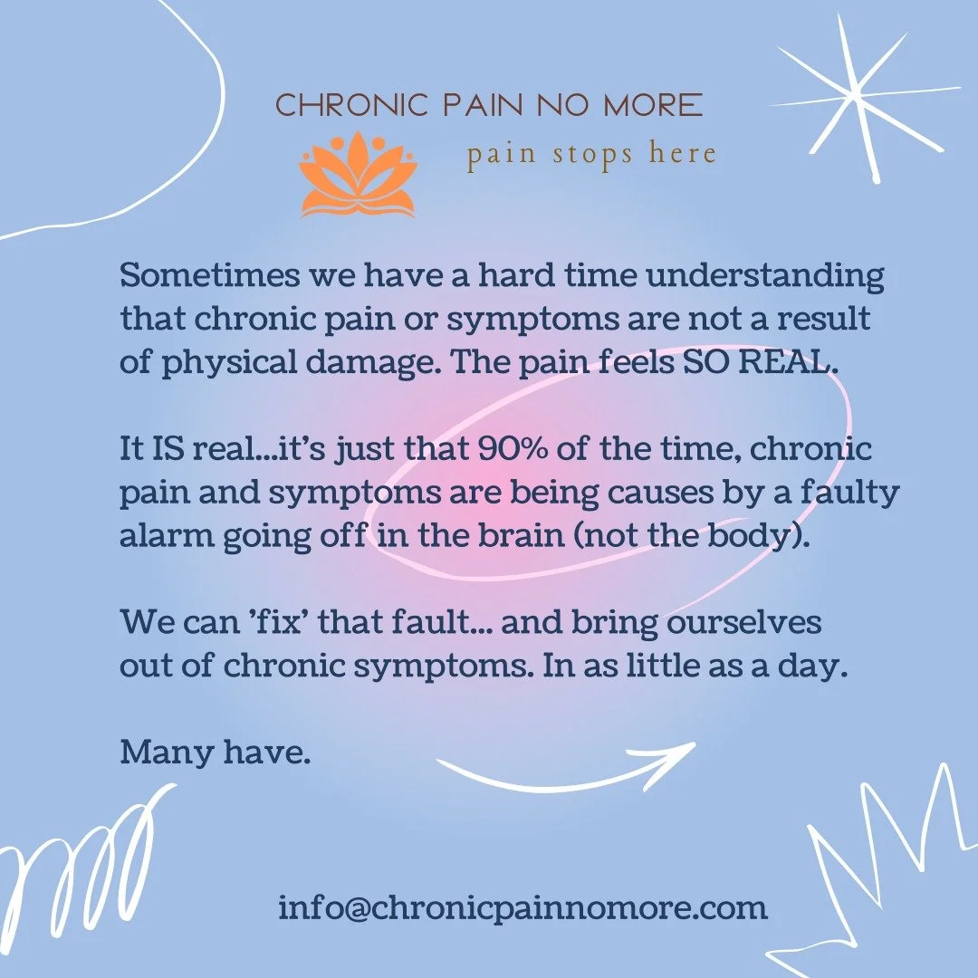 If you have chronic pain or symptoms, there is a 90–95% chance that you can be free.